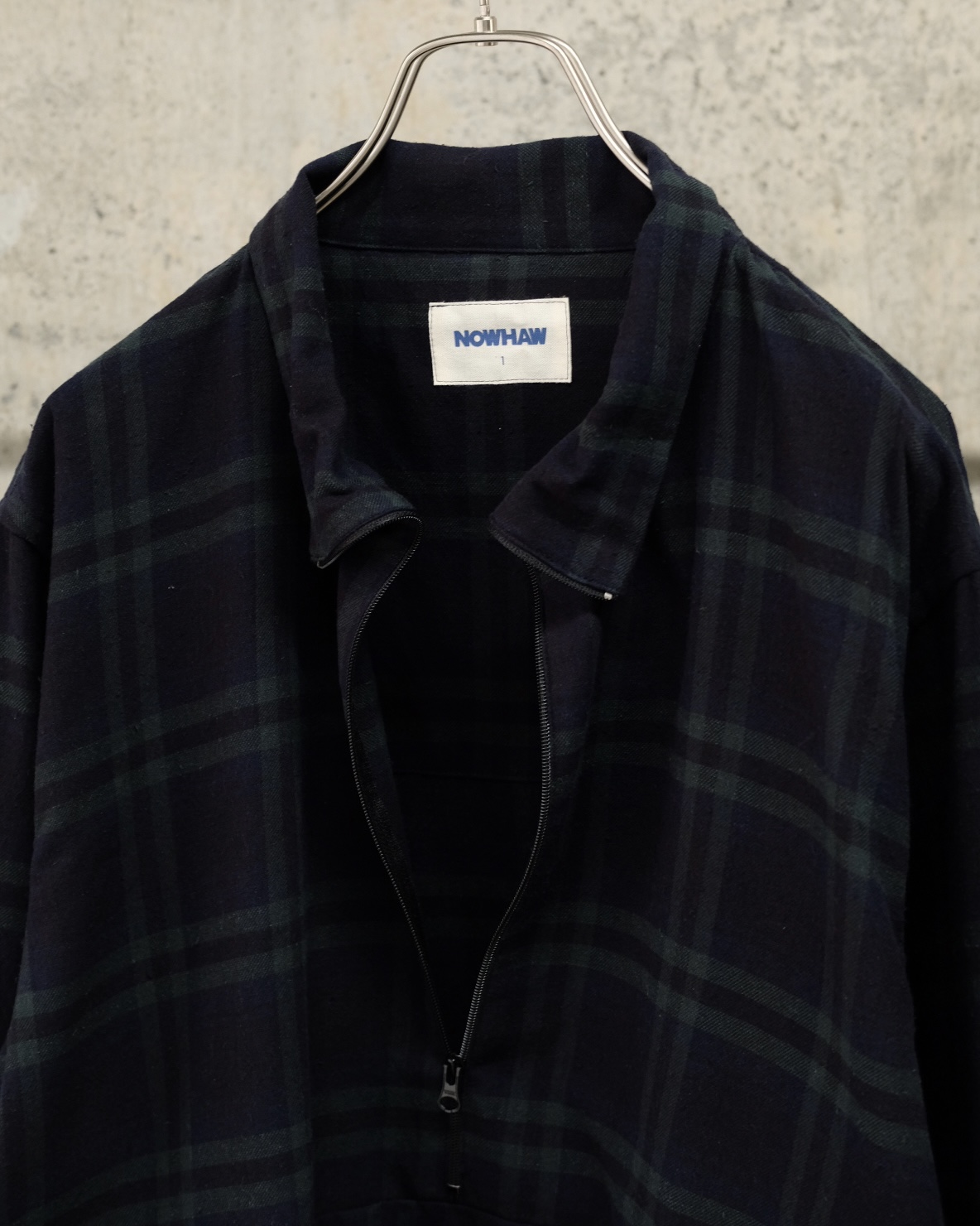 立ち襟デザインですが、ジップを開いて襟を折った状態でも 襟の形が決まる様にスナップボタン付きにしています。サイドポケット付き。