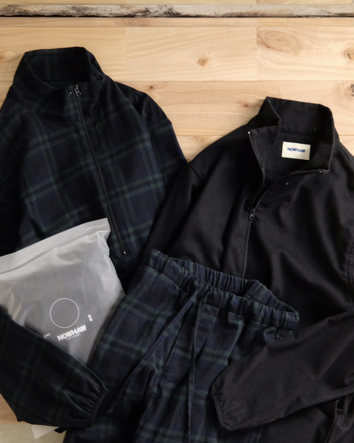 日々を軽やかに踊りながら過ごすイメージのハーフジッププルオーバーとゆったりしたシルエットのジョガーパンツのセットアップ“bounce”