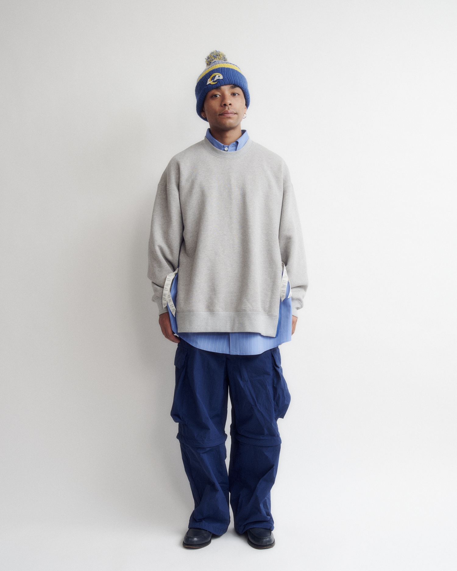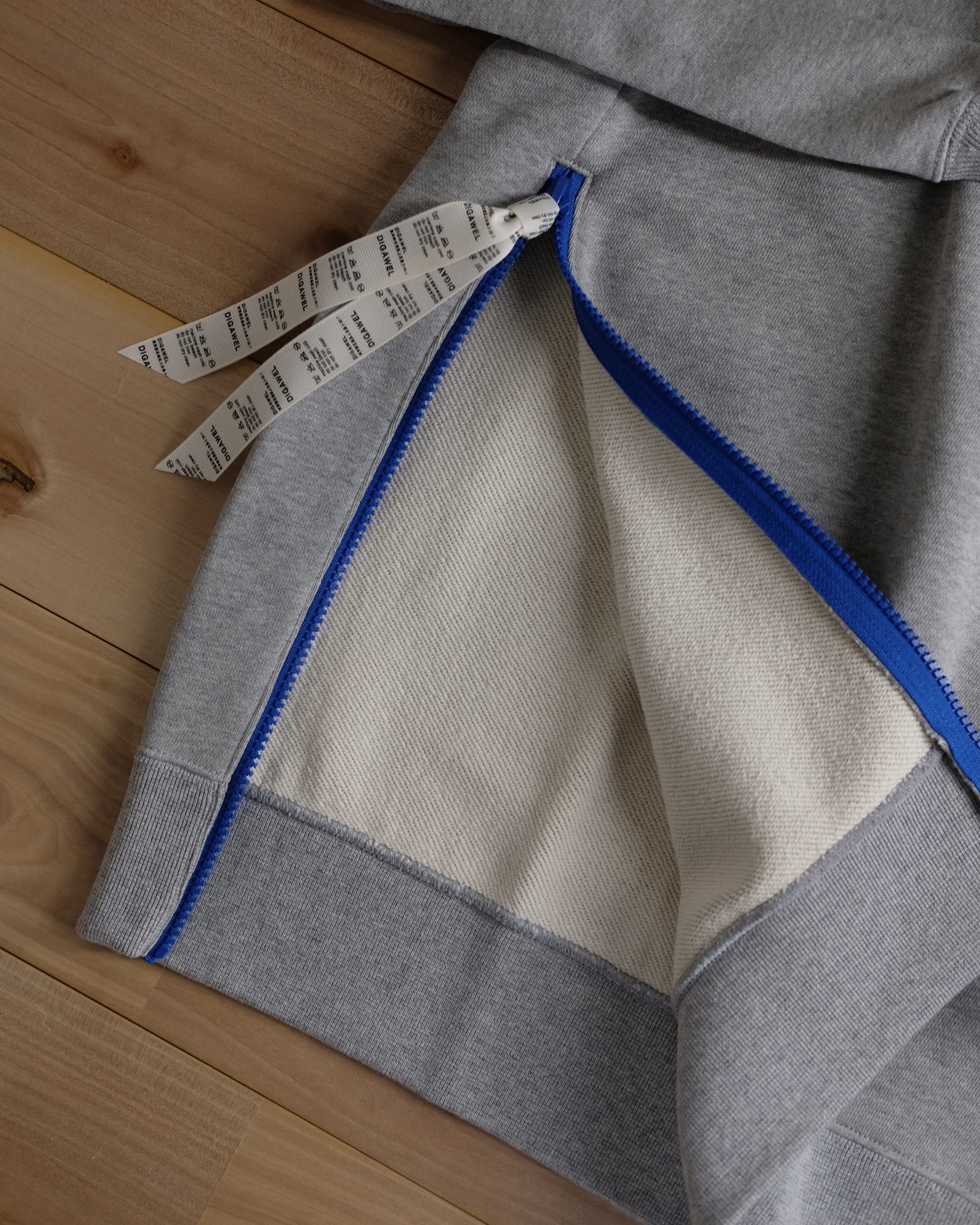 裏糸に10番を双糸撚りした糸を配し、立体感のあるループが膨らみを引き出したヘビーウェイトな裏毛を使用しています。