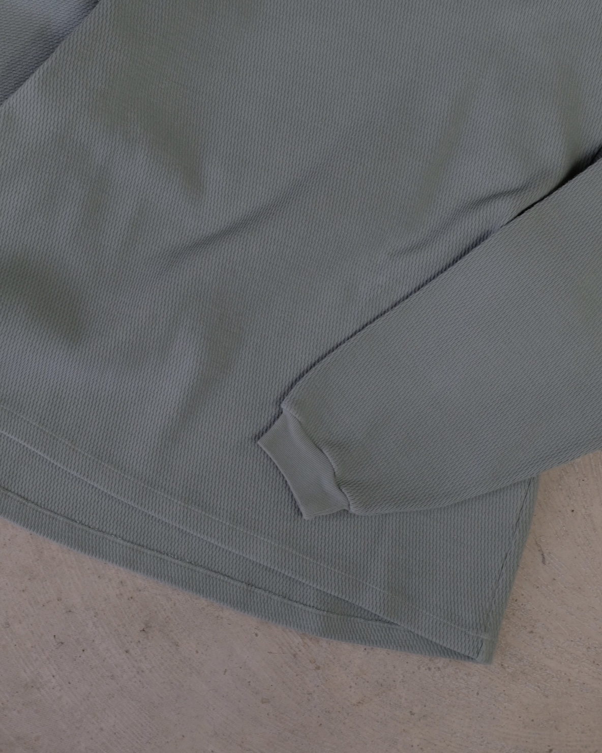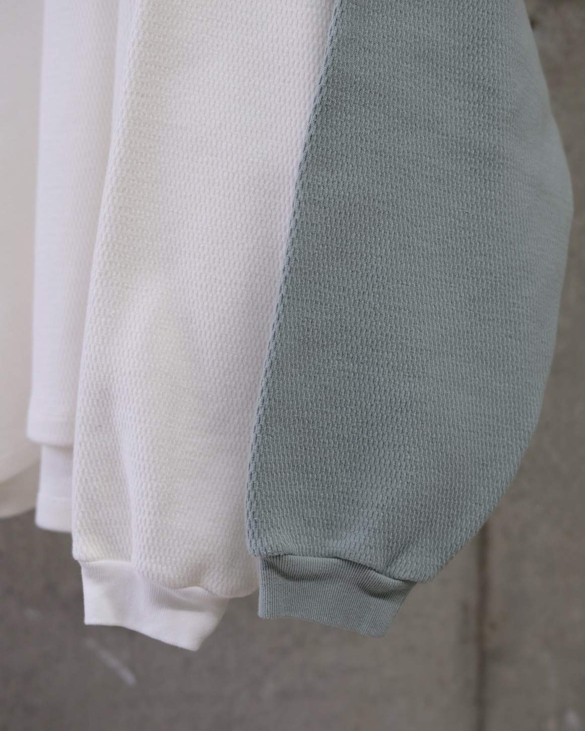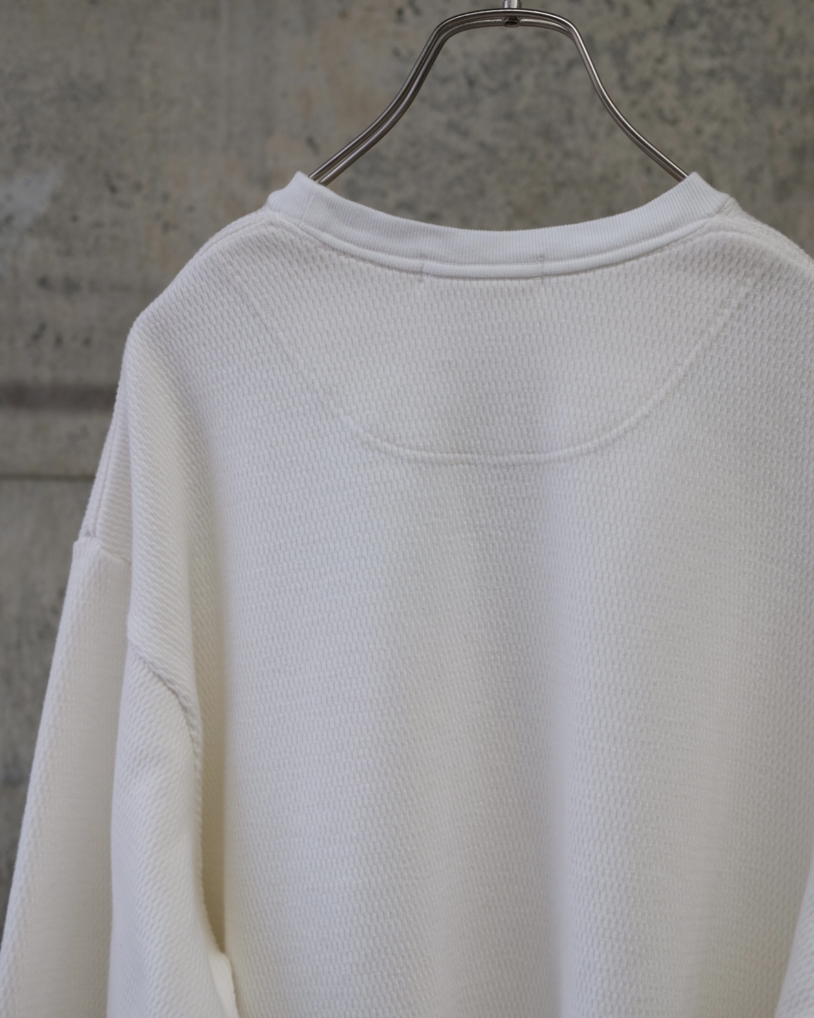 こちらの「C品番」はヘビーウェイトのダブルフェイスサーマル生地を使用しており、製品染めで仕上げた奥行きのある表情が魅力です。