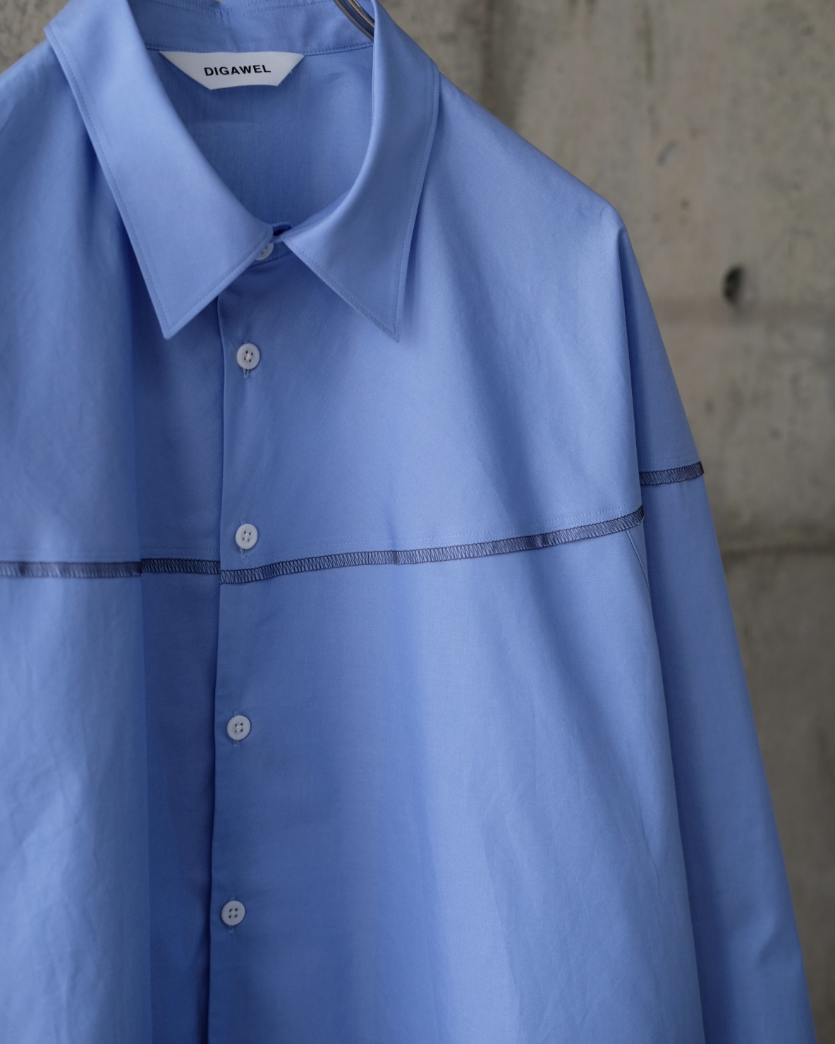 カップショルダーで構成したドルマンスリーブのような印象の配色ステッチが魅力です。