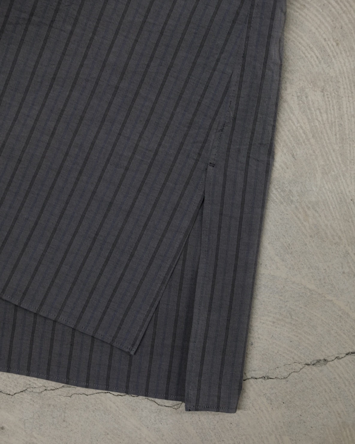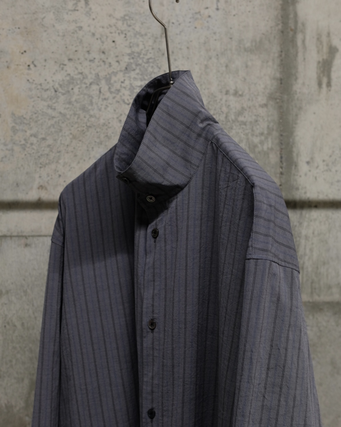 こちらのC品番はイタリアBIANCO TESSUTI社のシャンブレー織にクラッシックなストライプ柄を掛け合わせてウォッシュ加工を施した表情豊かなタイプライターを使用。