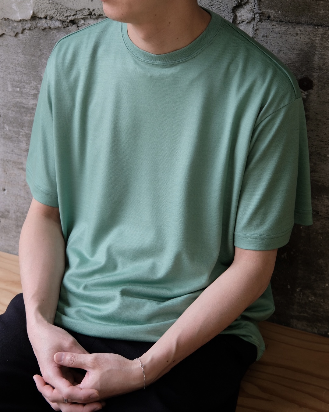 細番手のスーパー原料ウールを使用したショートスリーブTシャツ。