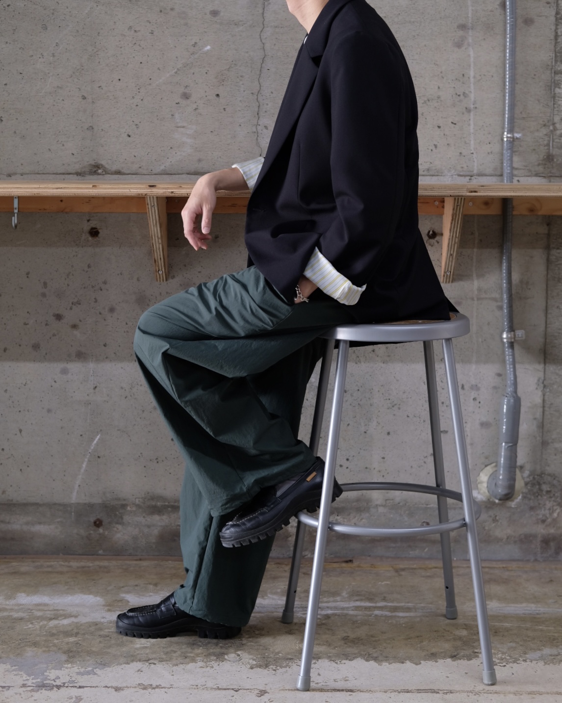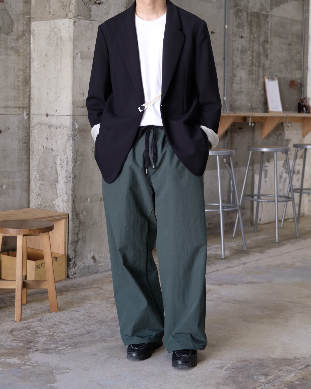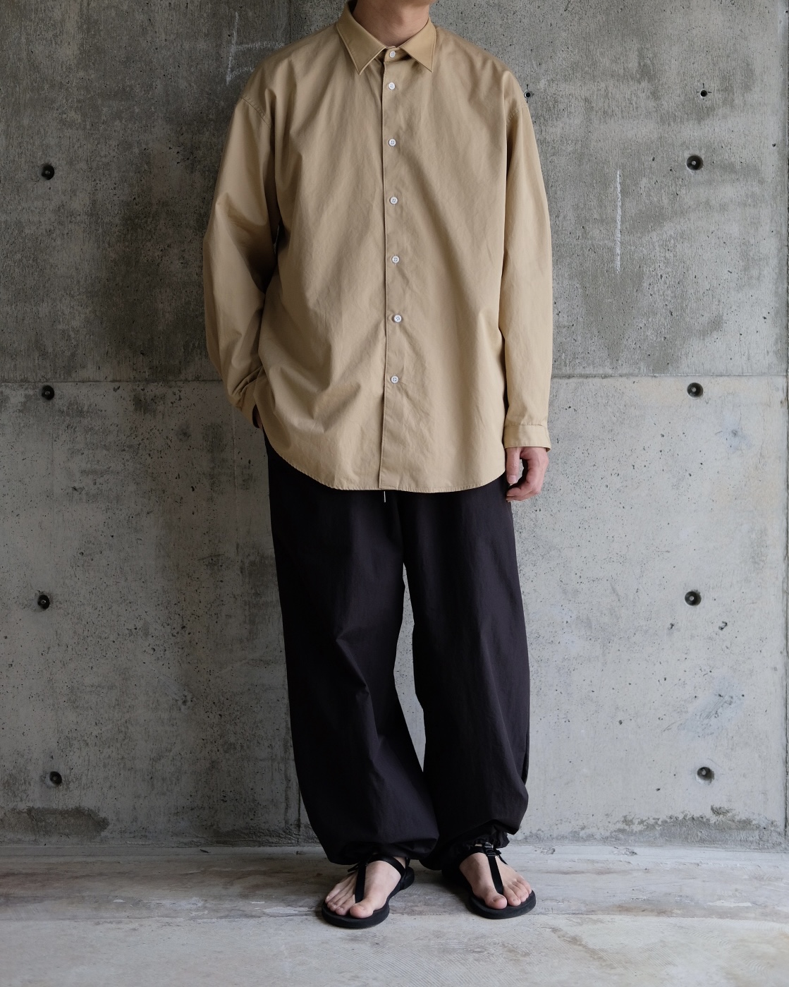 本来はレイヤードを前提としたデザインを単体で着用できる様に再構築しており、ボリューム感のあるストレートシルエット。