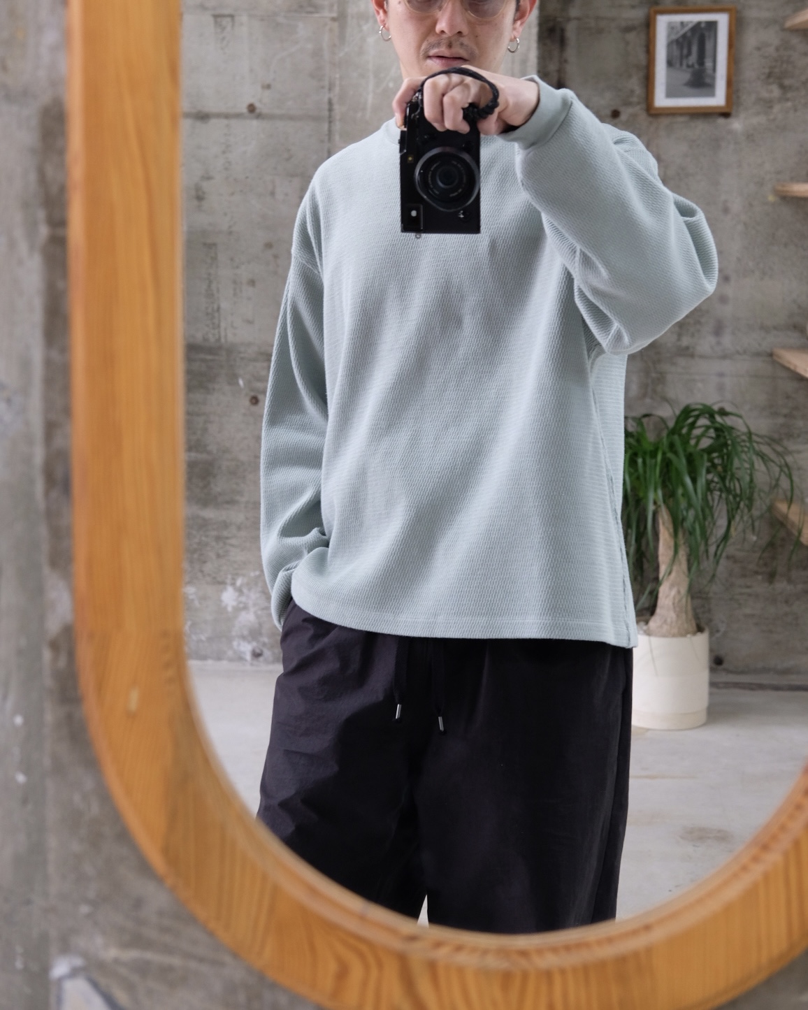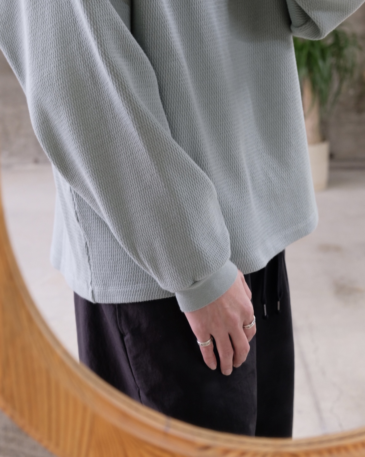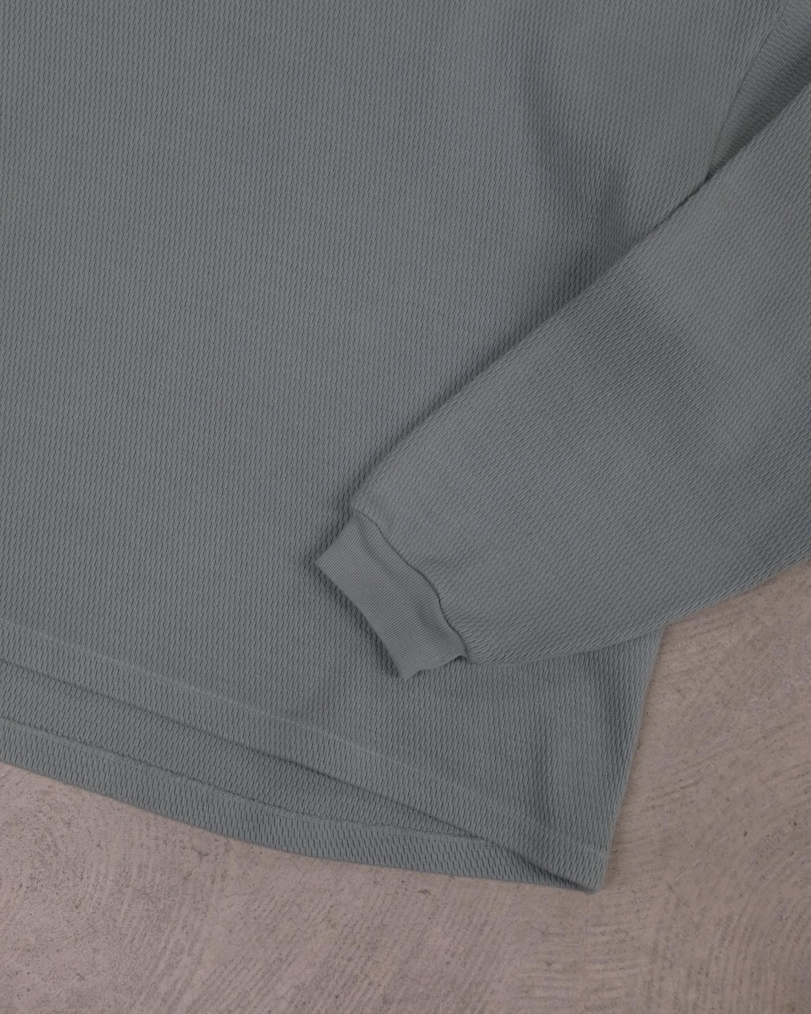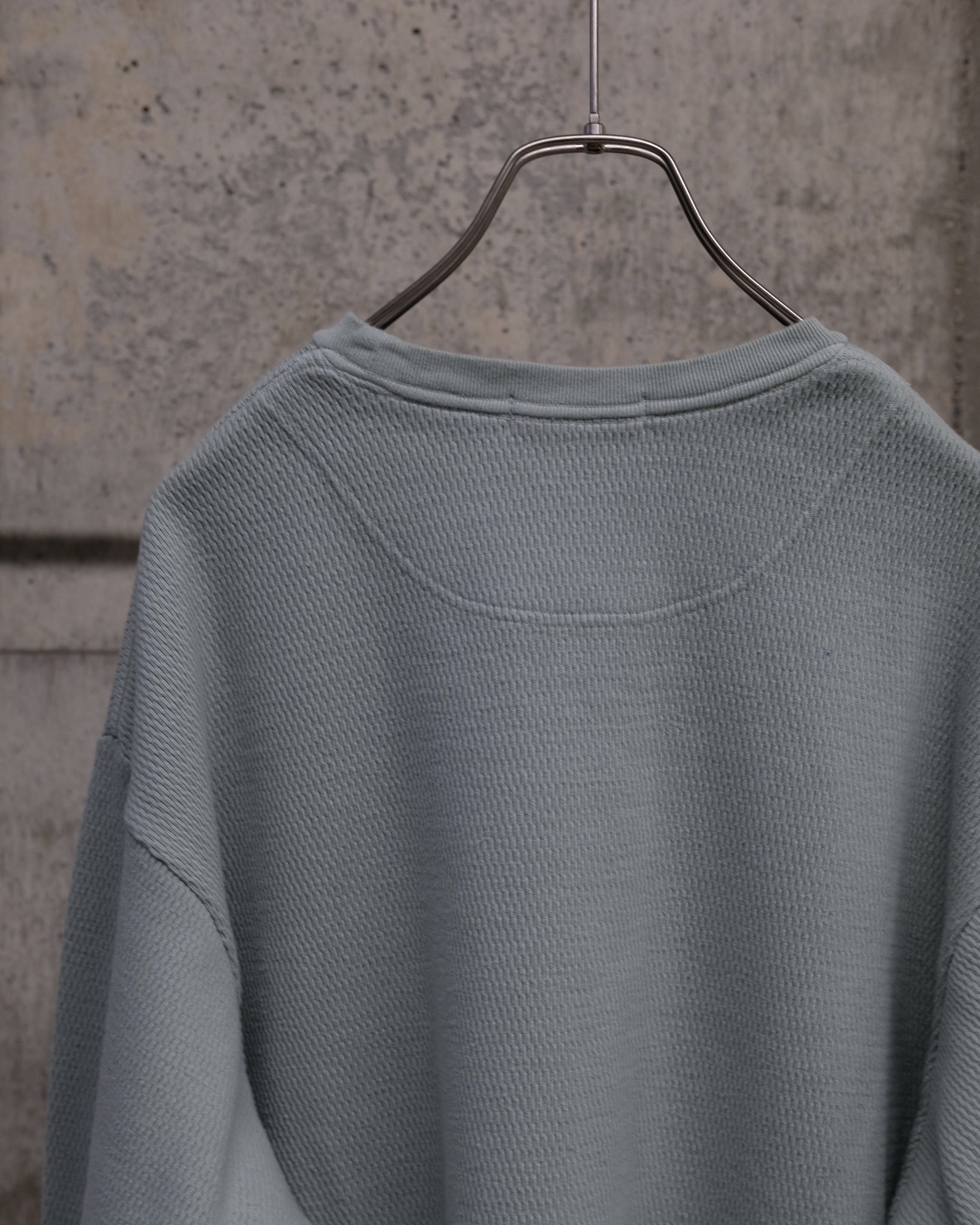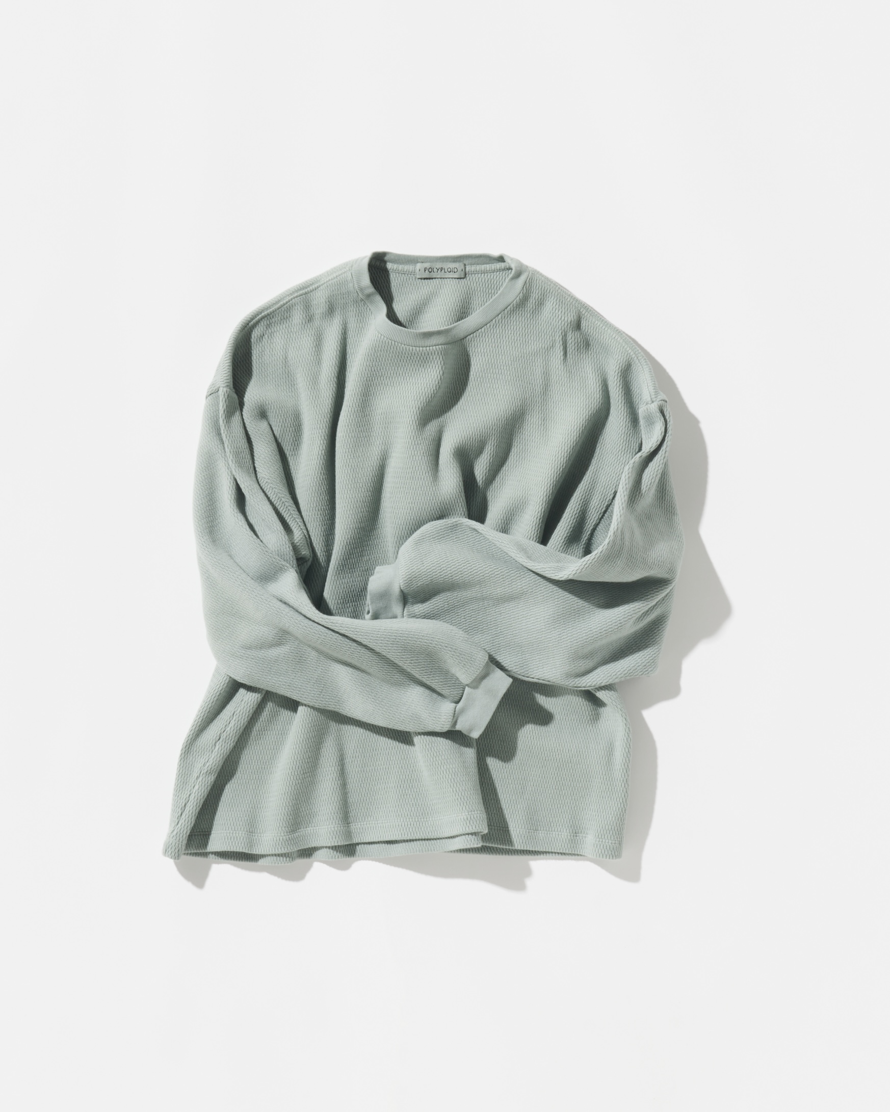 こちらの「C品番」はヘビーウェイトのダブルフェイスサーマル生地を使用しており、製品染めで仕上げた奥行きのある表情が魅力です。