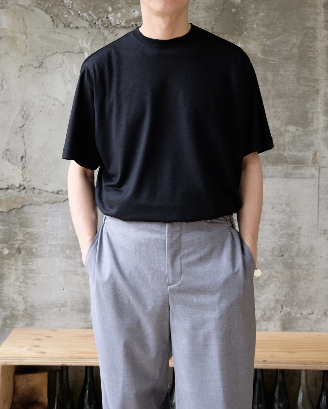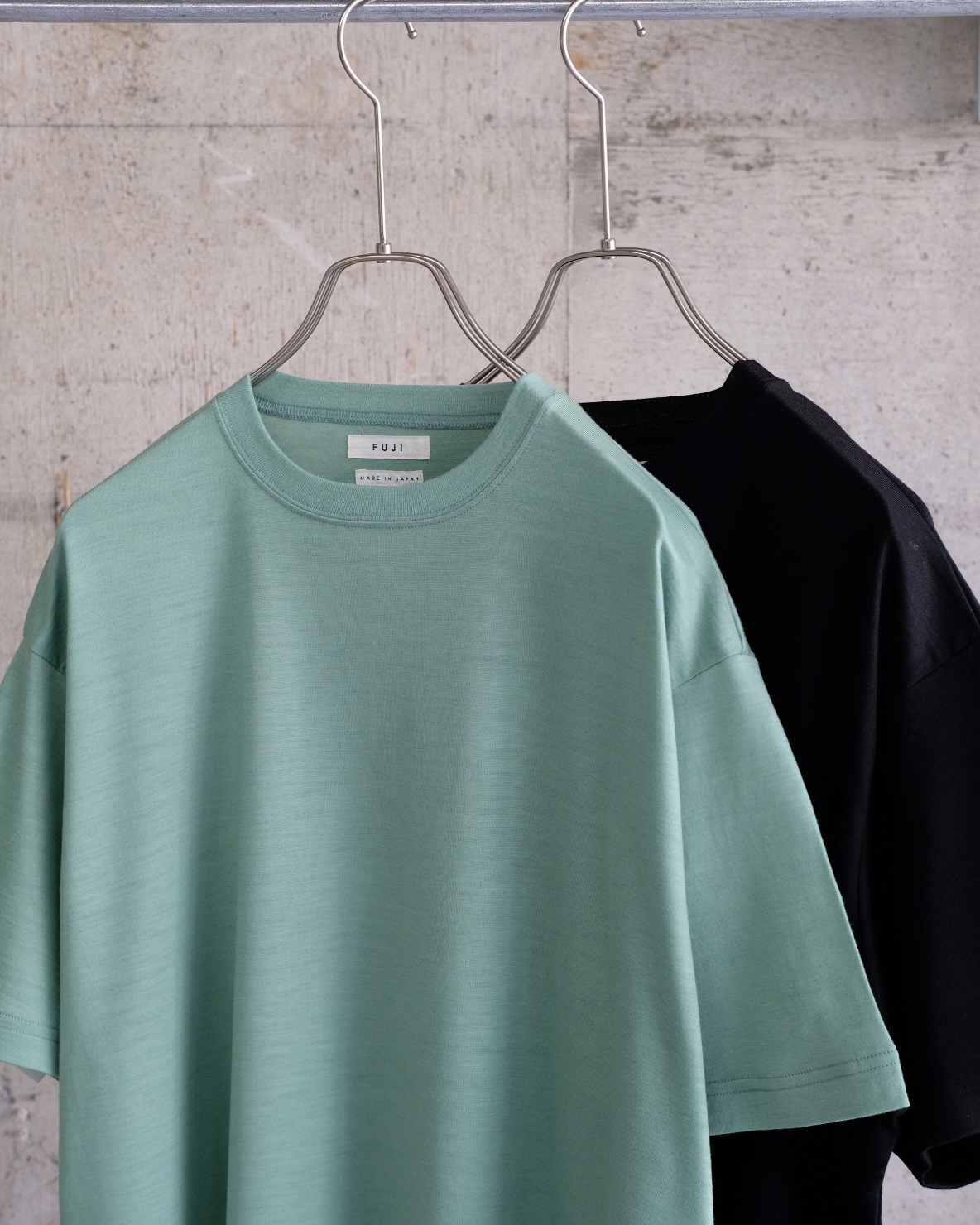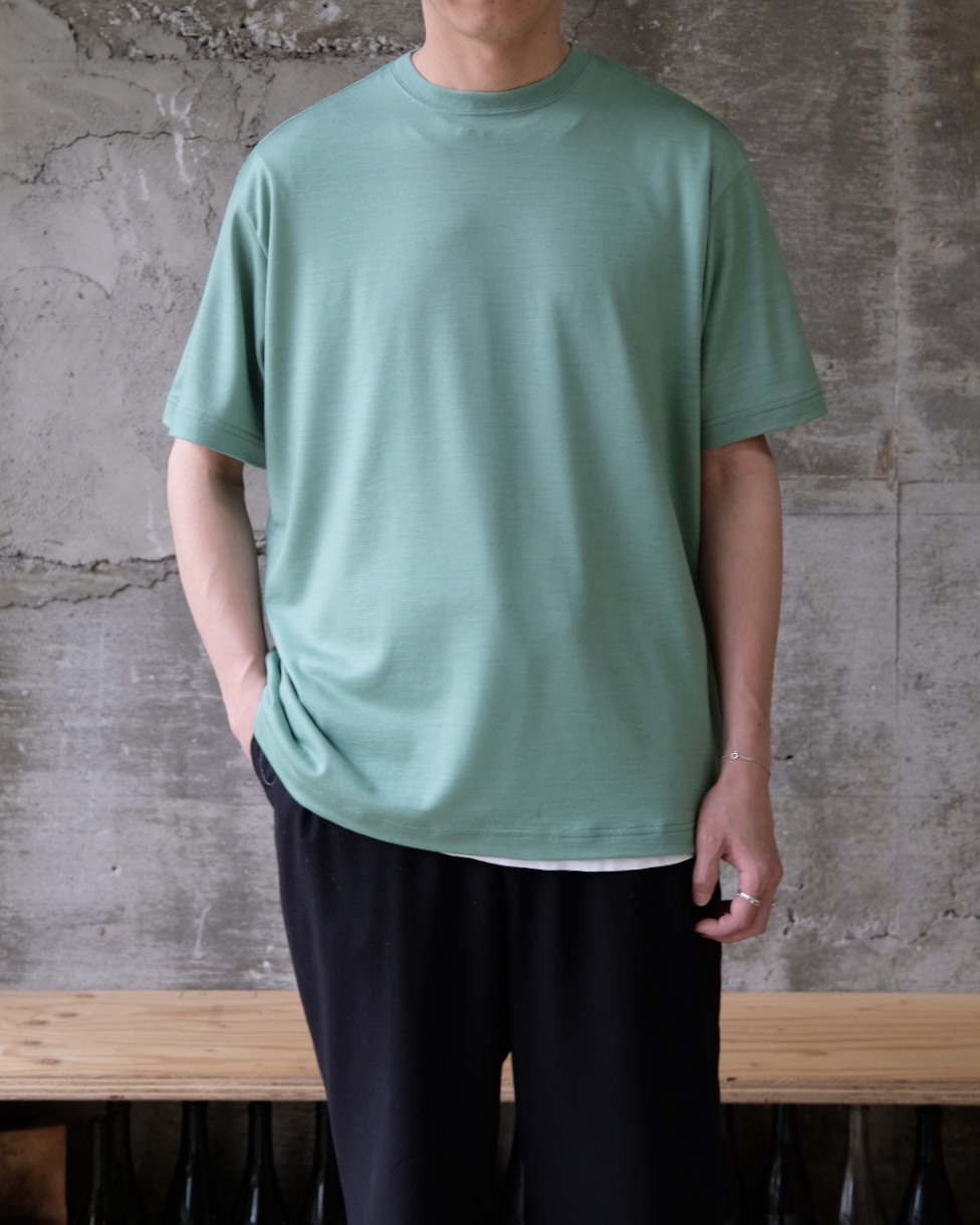 細番手のスーパー原料ウールを使用したショートスリーブTシャツ。
