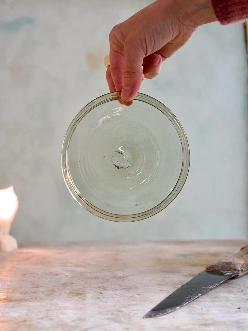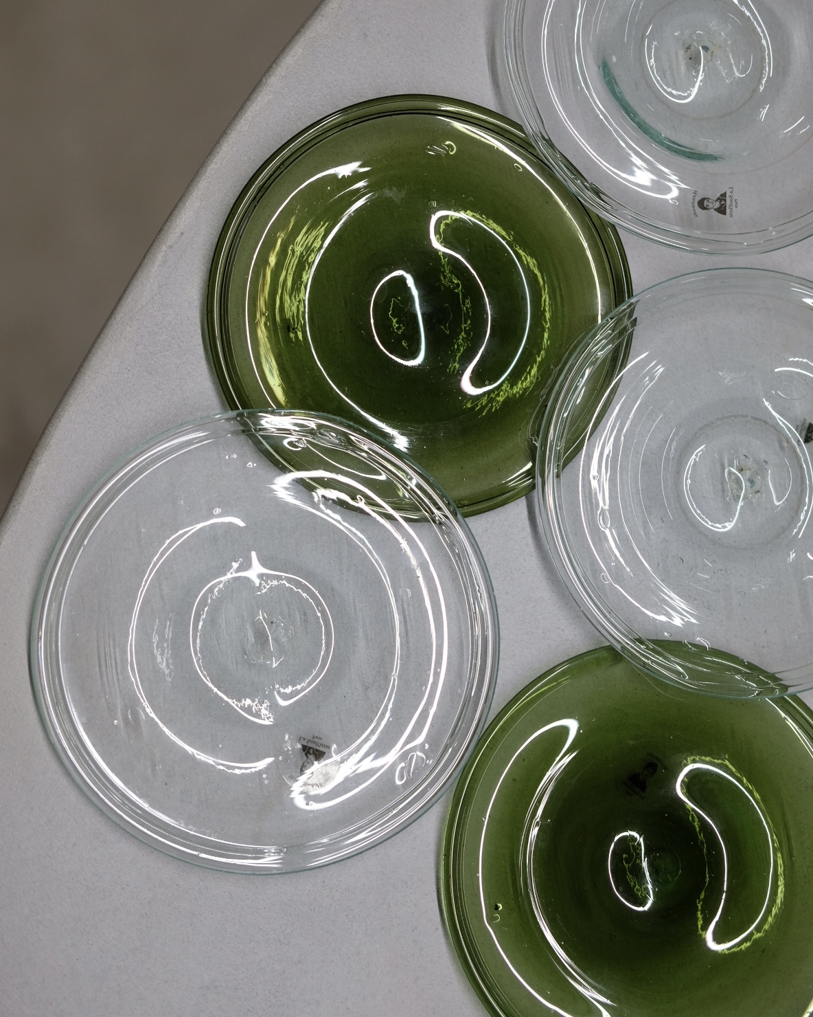 The Assiette 16cm is mouth-blown and hand-crafted from recycled glass by our master glassblowers. Each piece is first blown into a ball, then opened and flattened to create a small dish. The sides of the dish are folded over to create the collared border which is a true sign of the handmade quality of this plate. The Assiette 16cm is the perfect size for your side dishes. Use it for your small salads, tapas, and desserts.