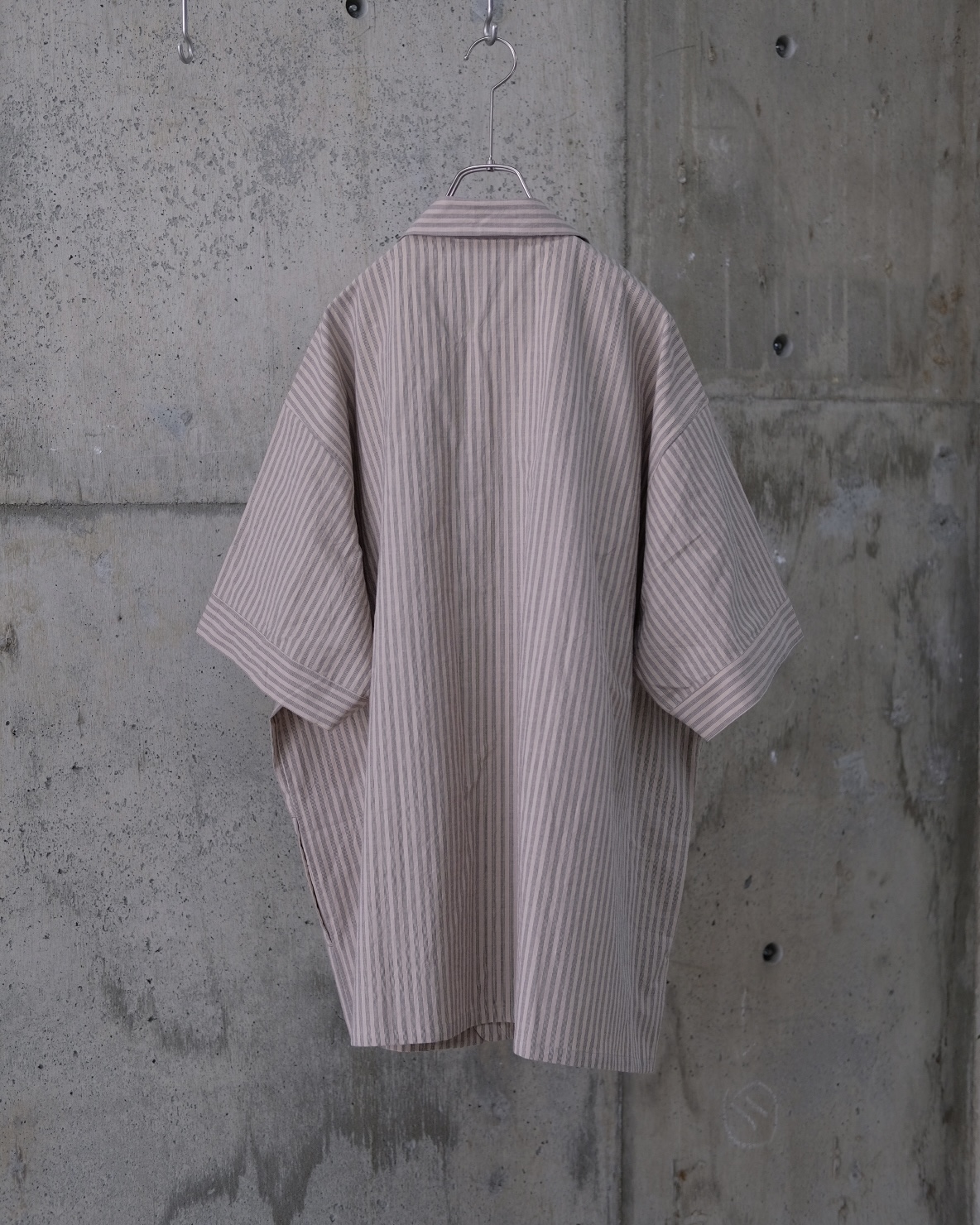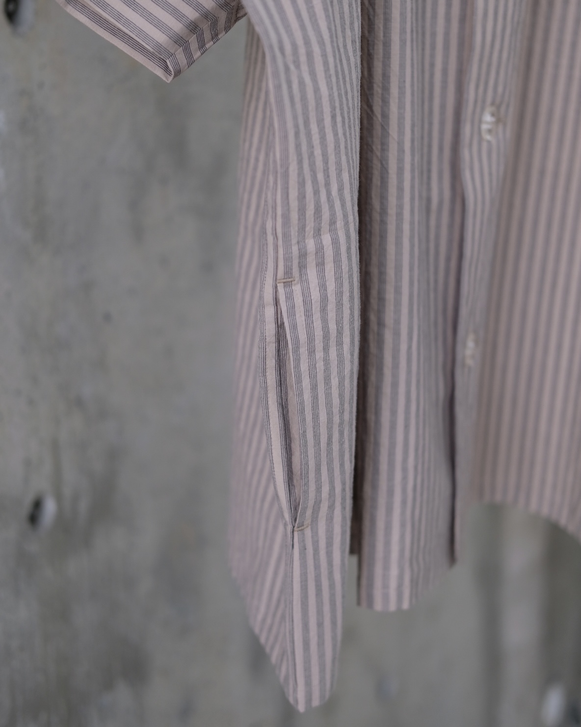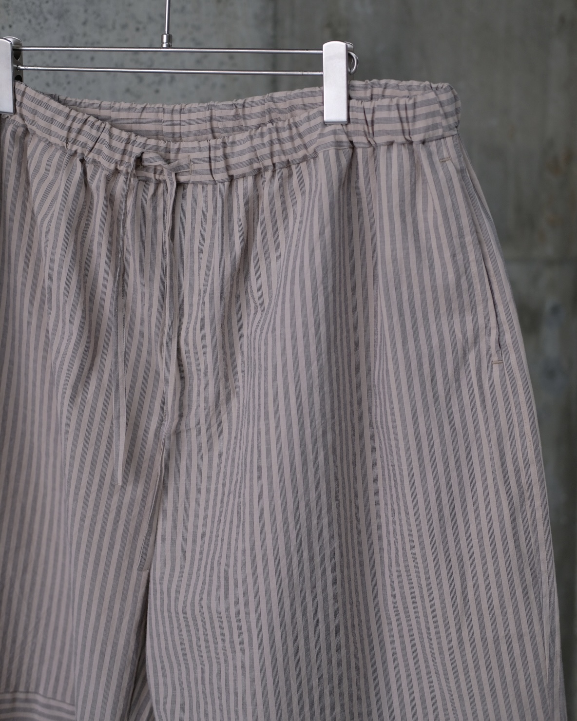 コットンの平織りで洗い晒したようなナチュラルなシボ感と柔らかさが特徴のストライプ生地。