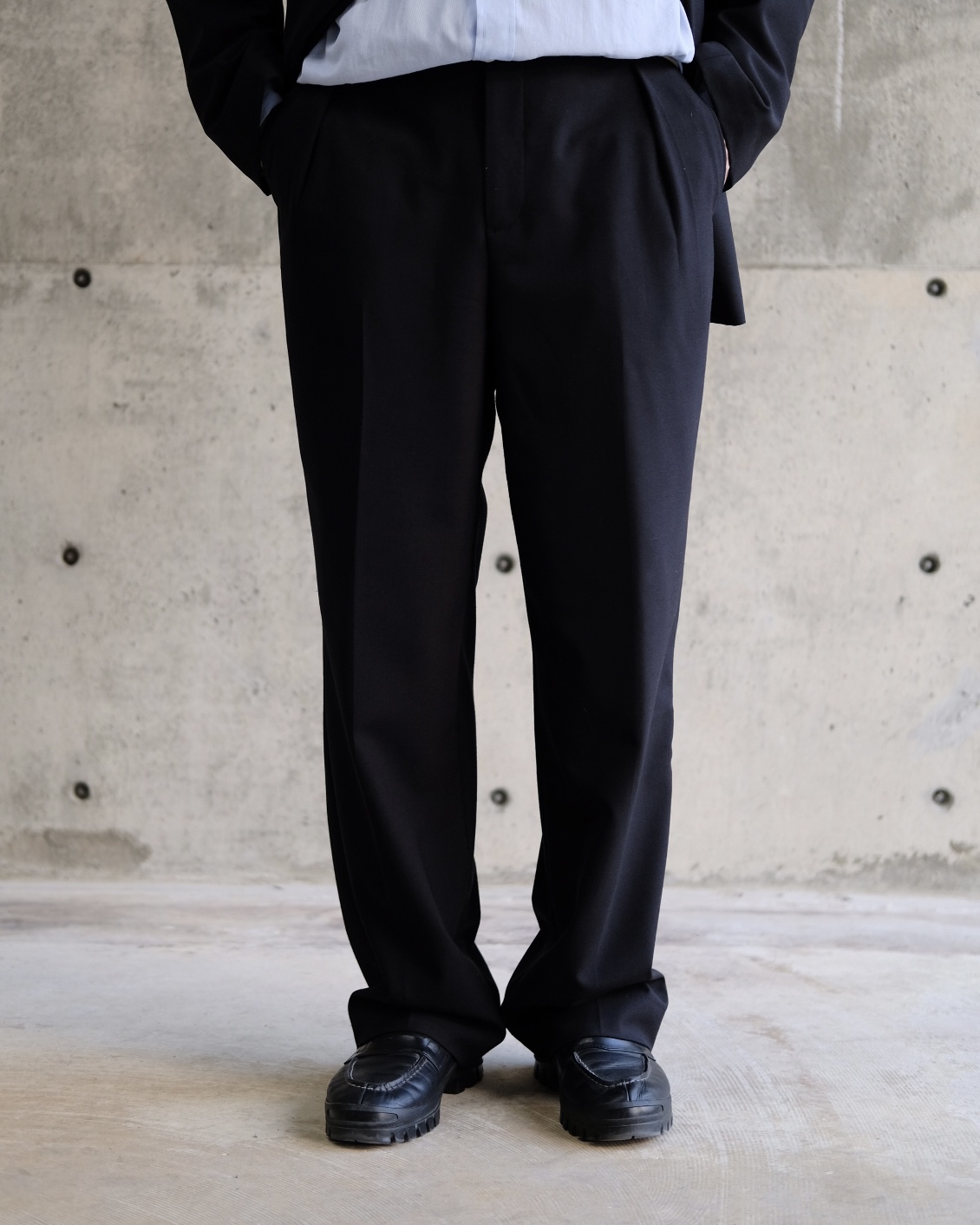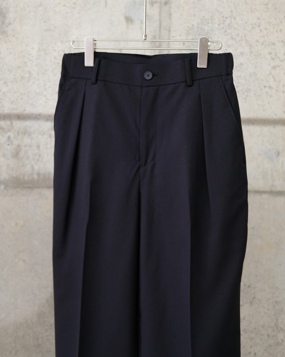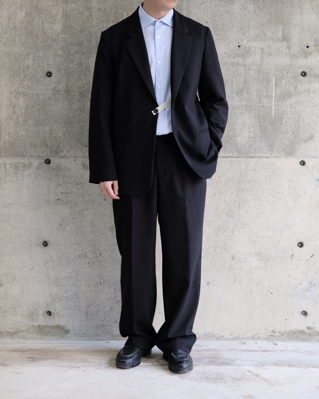 These are the center-pressed In-pleats pants that we have been continuing for the past few seasons. same fabric with the jacket.