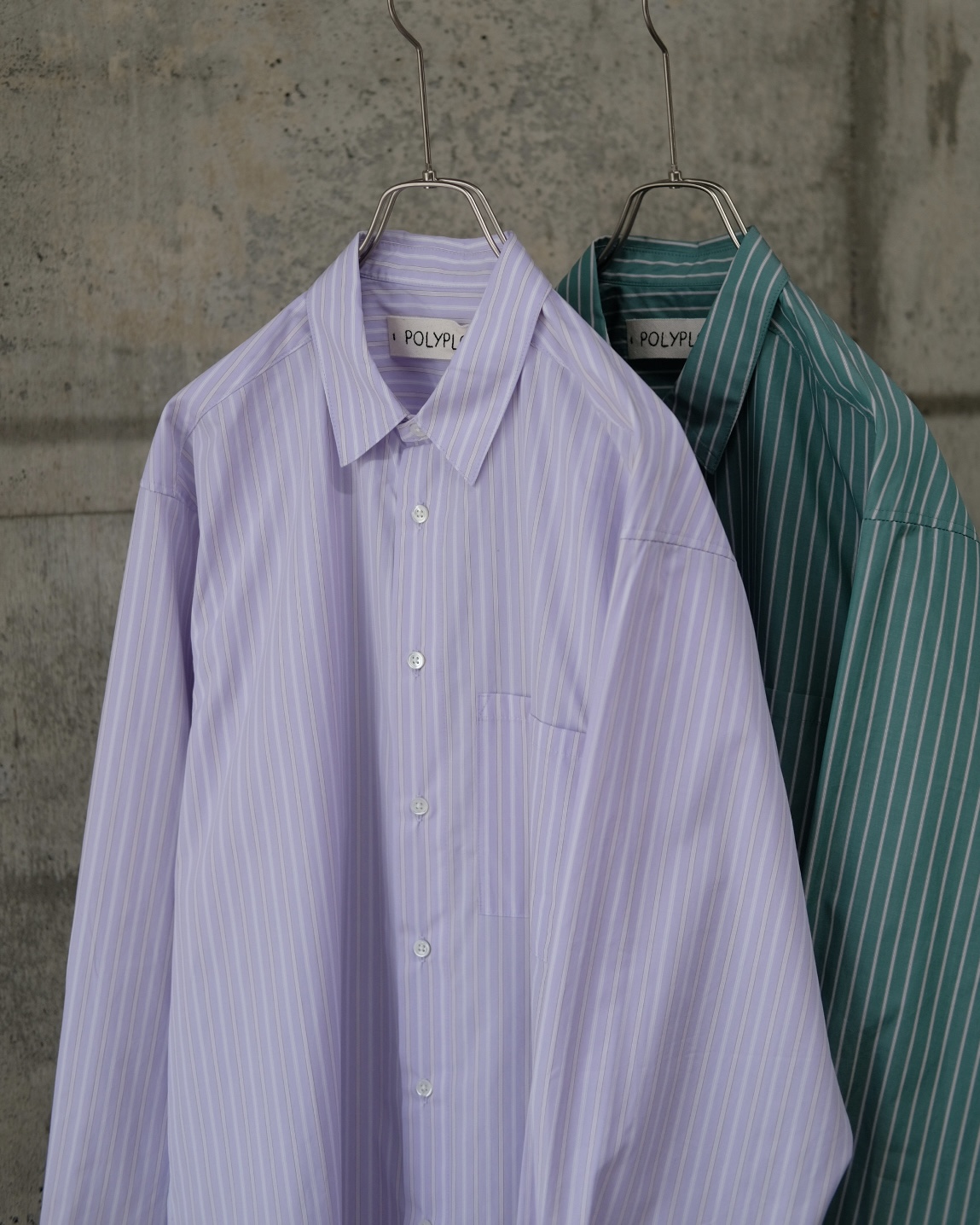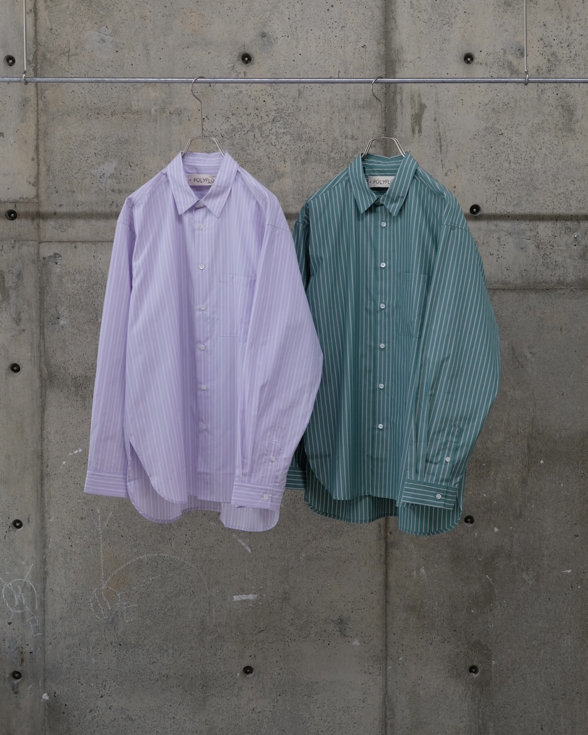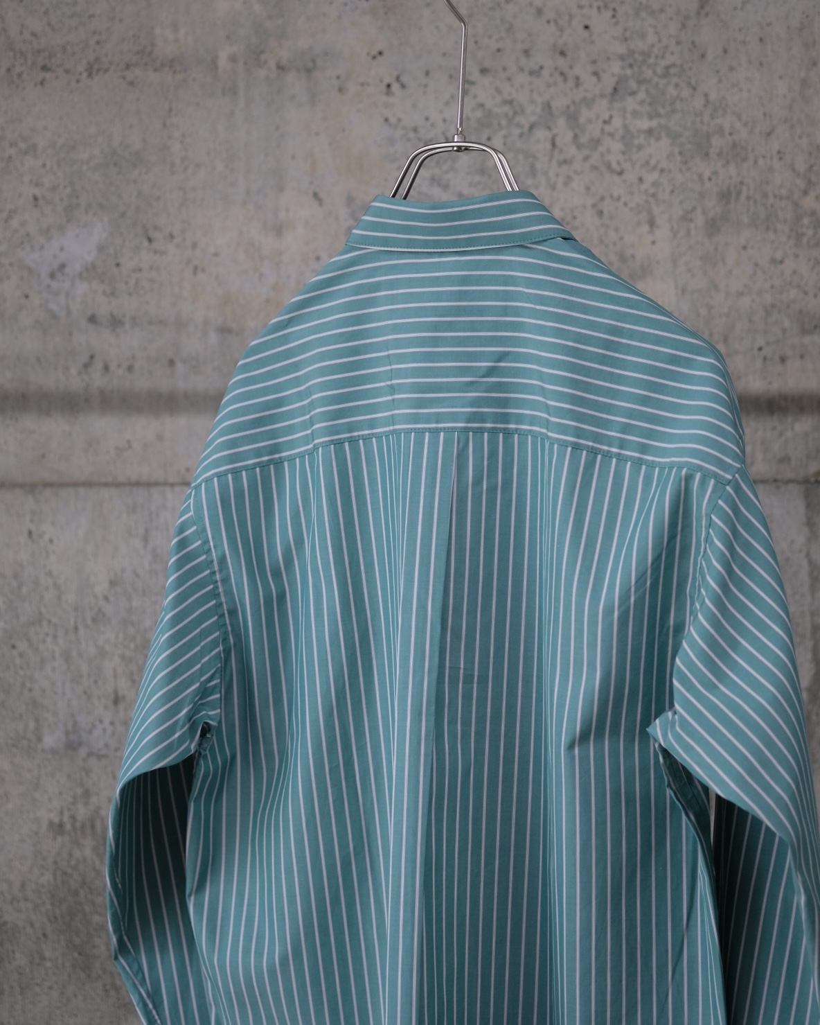 100番双糸を高密度で織り上げたストライプブロード生地を使用したクラッシックなポケット付きシャツ。